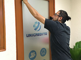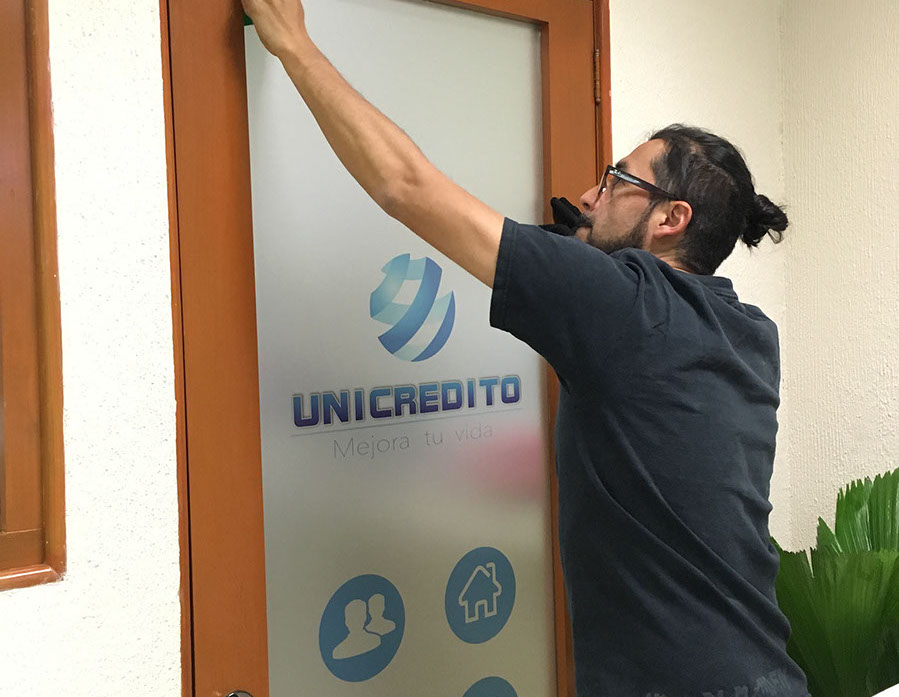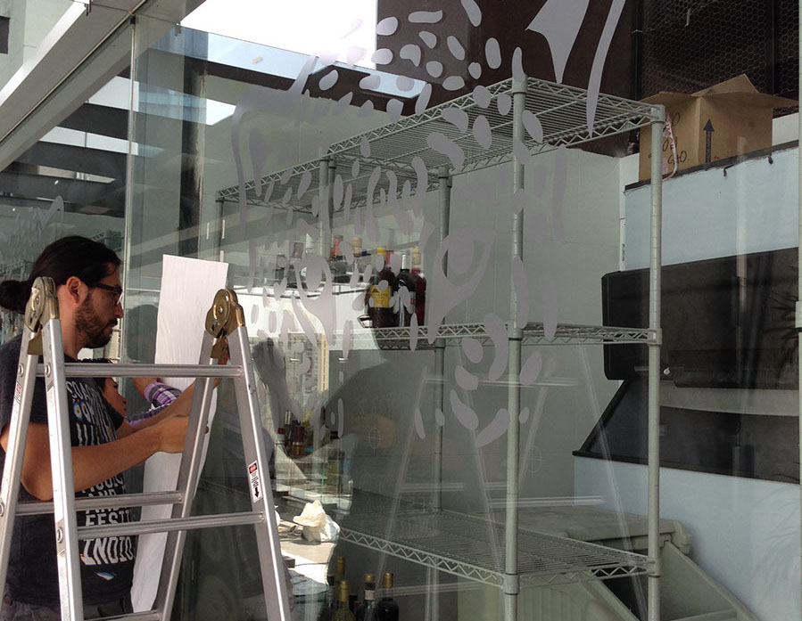 Vinil esmerilado con aplicaciones de color